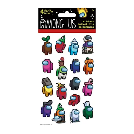 Click to enlargeClick to enlargeAmong Us Stickers 4-Sheets$3.00Select fulfillment optionPickupShippingCheck availability in nearby storesOut of stock at your location.Oops, sold out at your store Check Nearby StoresProduct descriptionSus & stylish—Among Us sticker pack to deck out your stuff.Includes 4 countAges: 3+Country of Origin: Imported item #5125031