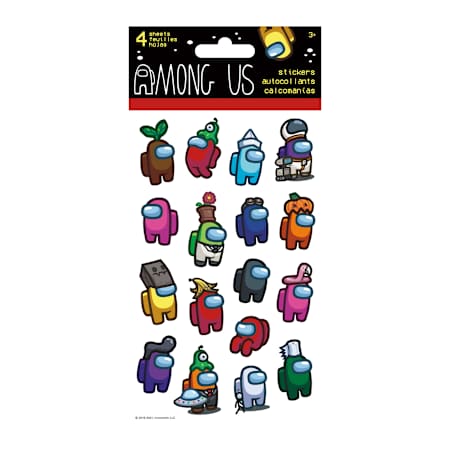 Among Us Stickers 4-Sheets$3.00Select fulfillment optionPickupShippingCheck availability in nearby storesOut of stock at your location.Oops, sold out at your store Check Nearby StoresProduct descriptionSus & stylish—Among Us sticker pack to deck out your stuff.Includes 4 countAges: 3+Country of Origin: Imported item #5125031