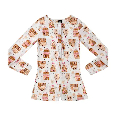- This Juniors Christmas Onesie is all about effortless holiday style, soft, stretchy and packed with festive energy that's perfect for cozy nights at home. Available in fun holiday prints like deer, gingerbread houses, and red bows for a cheerful seasonal vibe.