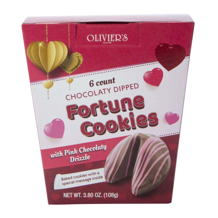 - Sweeten up Valentine's Day with Olivier's Chocolaty Dipped Fortune Cookies! With a pink chocolaty drizzle & a special message inside every fortune cookie to help share the love.