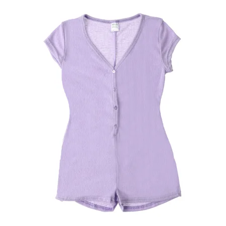 - Show out & lounge out in this ribbed one-piece romper. The button-up v-neck & super soft fabric are so slay!