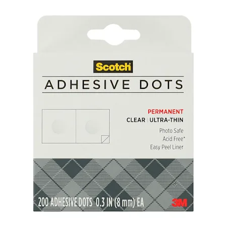 Click to enlargeClick to enlargeClick to enlargeScotch® Adhesive Dots 200-Pack$4.00Select fulfillment optionPickupShippingCheck availability in nearby storesOut of stock at your location.Oops, sold out at your store Check Nearby StoresProduct descriptionTackle crafts and projects with these 200 adhesive dots.Includes 200 countCountry of Origin: Imported item #9228063